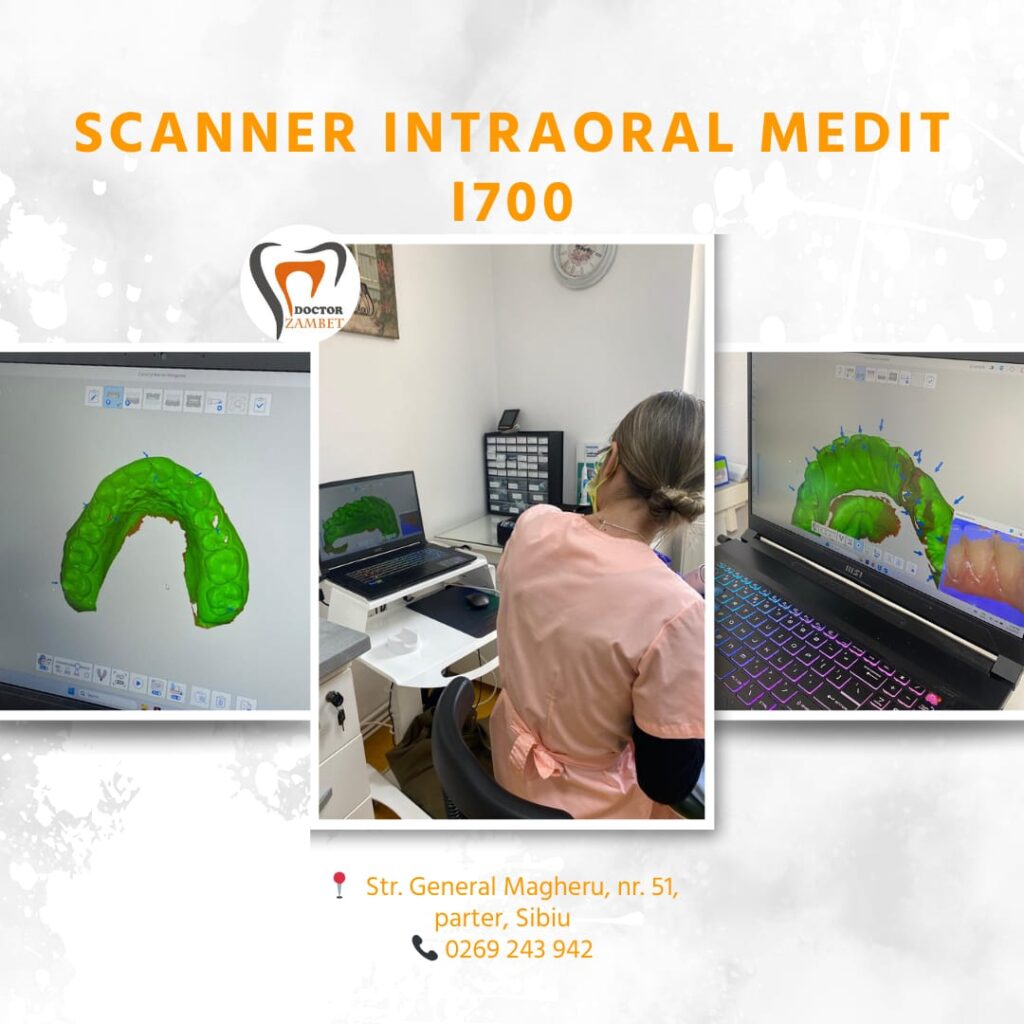 Acest dispozitiv revoluționar ne permite să înlocuim amprentele tradiționale (acelea cu material vâscos și disconfortabil) cu o scanare digitală rapidă, precisă și complet non-invazivă.
